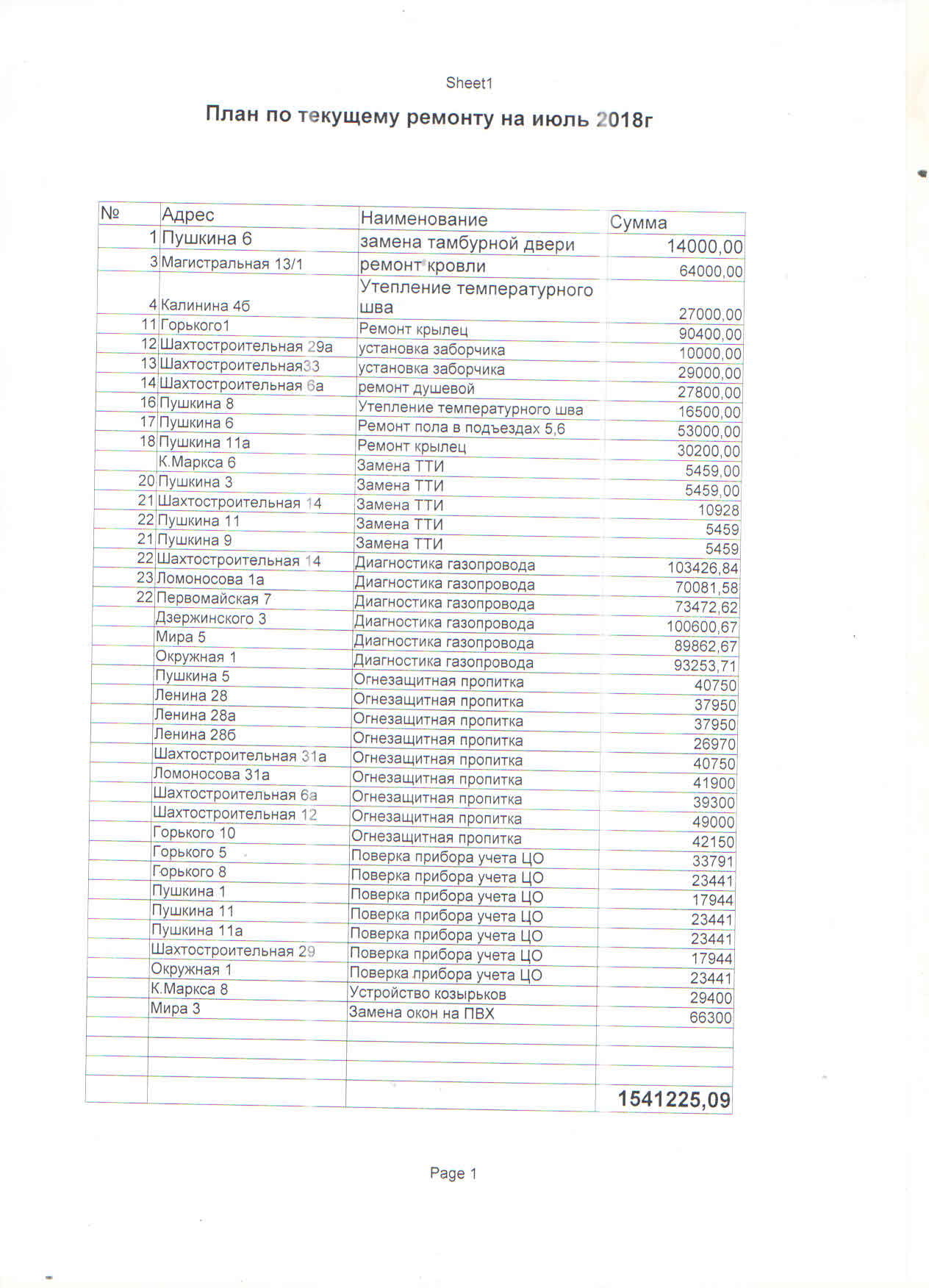 План по текущему ремонту на июль 2018 года
